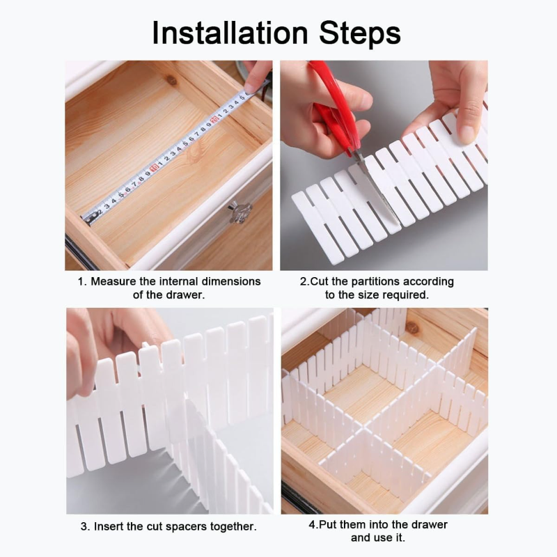ফ্রি কম্বিনেশন ও DIY: আপনার ড্রয়ারের সাইজ অনুযায়ী বোর্ডগুলোকে (৪টি পিস) কেটে আপনার ইচ্ছামতো ছোট-বড় বক্সে ভাগ করে নিতে পারবেন।