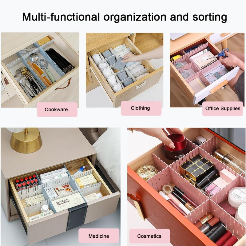 🌟 স্মার্ট Drawer Organizer-এর মাধ্যমে আপনার জীবনকে সহজ করুন!আপনার ড্রয়ারে জামাকাপড়, মেকআপ আইটেম বা ছোট জিনিসগুলো কি সবসময় এলোমেলো হয়ে থাকে? এই DIY Drawer Organizer Partition Board এনেছে আপনার জন্য পারফেক্ট সমাধান! এটি একটি ফ্লেক্সিবল প্লাস্টিক বোর্ড যা আপনার প্রয়োজন অনুযায়ী কেটে, জোড়া লাগিয়ে, এবং কম্বাইন করে যেকোনো ড্রয়ারকে নিখুঁতভাবে সংগঠিত করতে পারে।